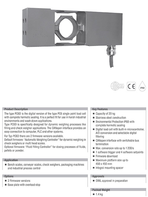 德国富林泰克Flintec PC6D称重传感器描述