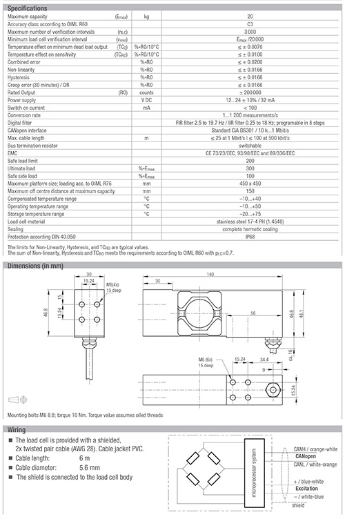 OIML 认证: C3 (Y = 10 000)